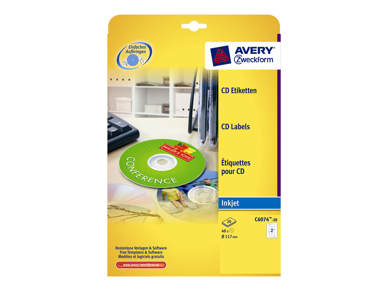 Avery Zweckform 6074 Inkjet Glossy Cd Etiketten O 117 Mm Glanzend 40 Etiketten Ebay