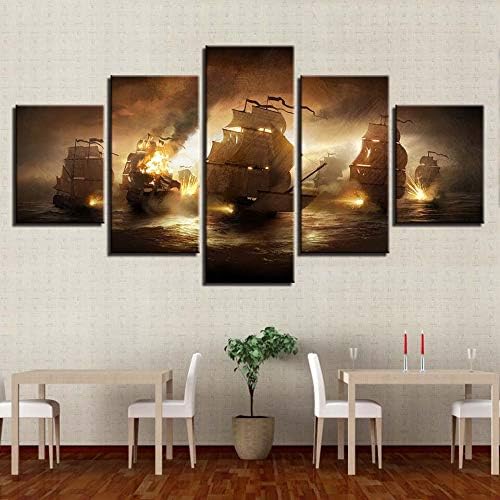 Aipior Moderne Leinwandbilder Hd Gedruckt Wandkunst Rahmen Wohnzimmer 5 Stucke Seeschlacht Schiffe Flamme Wohnkultur Malerei Poster Amazon De Kuche Haushalt