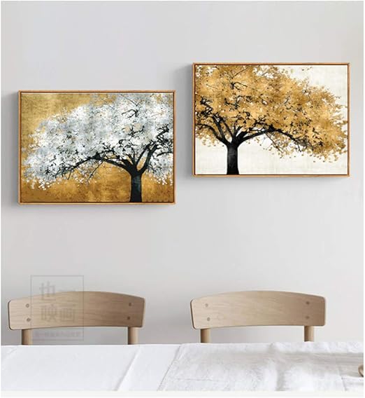 Dubdubd Golden Silver Rich Tree Moderne Leinwandbilder Abstrakte Kunst Fur Wohnzimmerposter Und Drucke Landschaftsbilder 60x80cmx2pcs Kein Rahmen Amazon De Kuche Haushalt