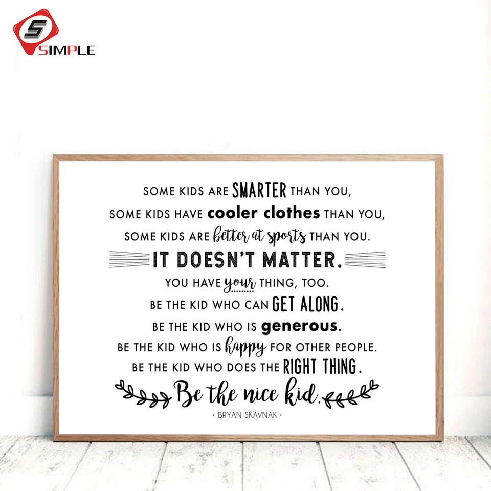 Werden Die Nizza Kid Zitate Wand Kunst Leinwand Malerei Schwarz Weiss Klassenzimmer Motivations Zitat Poster Druckt Bild Kinder Zimmer Dekor Malerei Und Kalligraphie Aliexpress