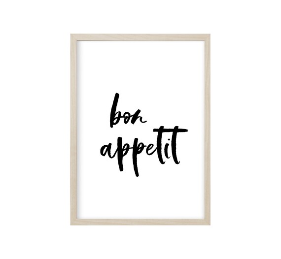 Poster Bon Appetit Schwarz Weiss Zitat Wall Art Print Fur Etsy
