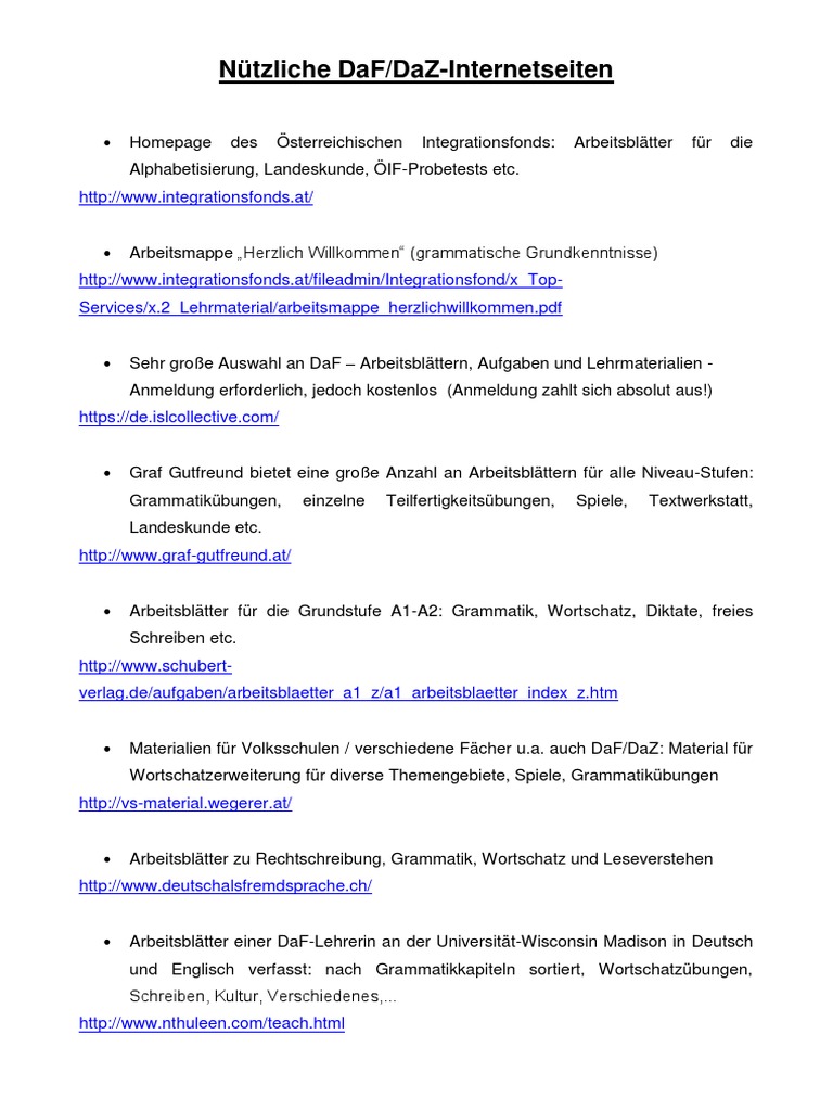 ServiceAngebote für Lehrende und Lernende im Bereich Deutsch als Fremdsprache (DaF) Unter anderem stehen eine Datenbank mit OnlineÜbungen und eine kommentierte Linksammlung zur Verfügung, außerdem auch Diskussionsforen zu Stellenangeboten, EMailAustausch und Fachdiskussionen. Puzzle und Spiele Graf Gutfreund Lernspiele;. ServiceAngebote für Lehrende und Lernende im Bereich Deutsch als Fremdsprache (DaF) Unter anderem stehen eine Datenbank mit OnlineÜbungen und eine kommentierte Linksammlung zur Verfügung, außerdem auch Diskussionsforen zu Stellenangeboten, EMailAustausch und Fachdiskussionen.