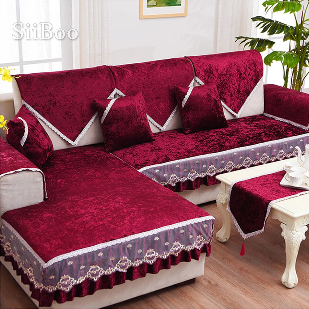 Luxus Wein Rot Gold Fleece Samt Sofa Abdeckung Mobel Hussen Schnitts Couch Abdeckungen Fur Wohnzimmer Fundas De Sofa Sp40 Furniture Slipcovers Slipcovered Sectionalsectional Couch Covers Aliexpress