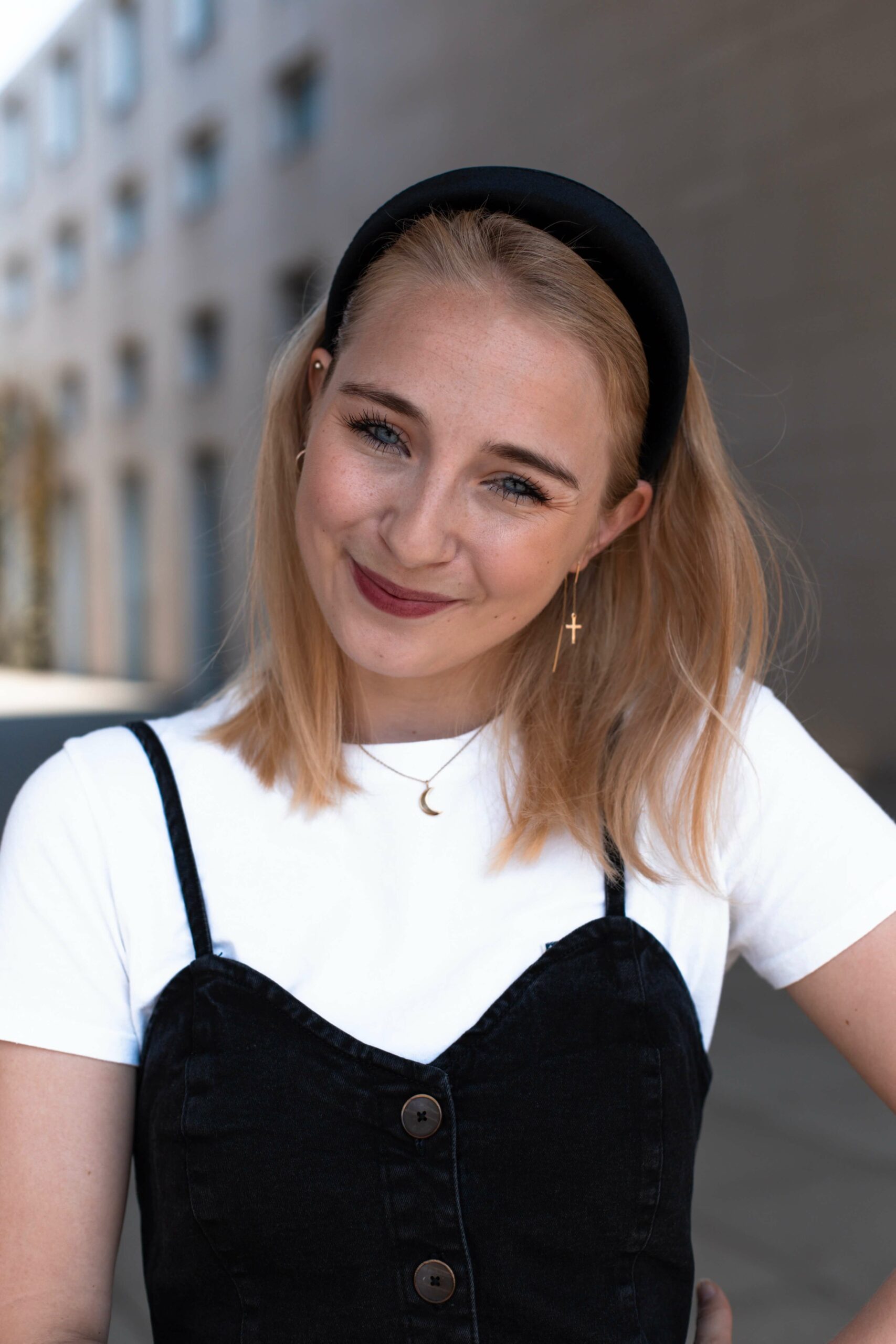 Frisuren 50er Shwarzes Kleid Kurze Blonde Haare Blaue Augen Ohrringe Halskette Haarband Frisur Frisuren Mit Haarband Kurze Haare Frisuren Mit Bandana