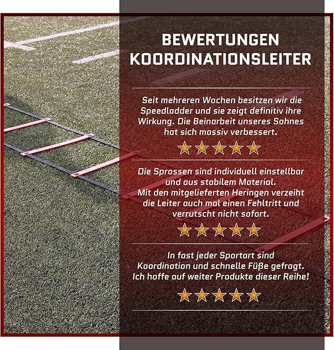 Die Koordinationsleiter ist ein Trainingsgerät mit dem auf einfache Art die Sprungkraft, Schnelligkeit und Koordination verbessert werden kann Diese Schritt und Sprungfolgen sind ein Grundlagentraining für fast alle Spielsportarten Besonders beliebt ist die Leiter im Fussball und in der Leichtathletik Koordination.