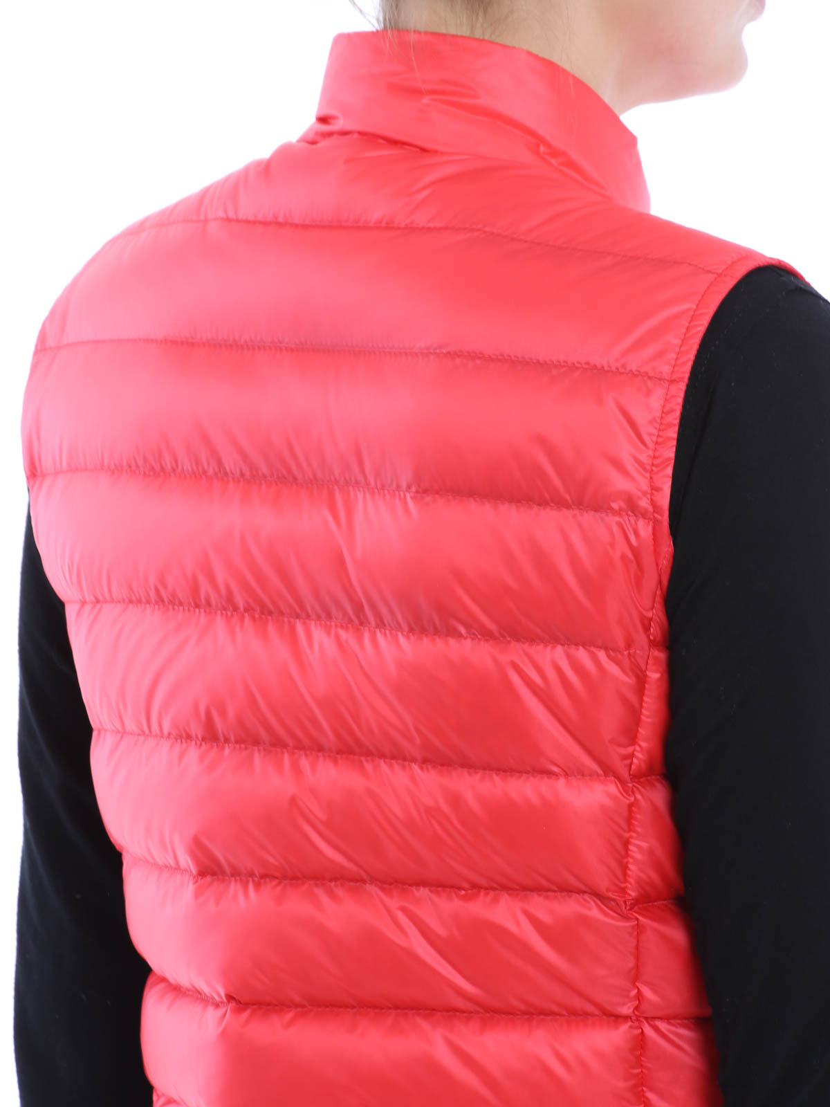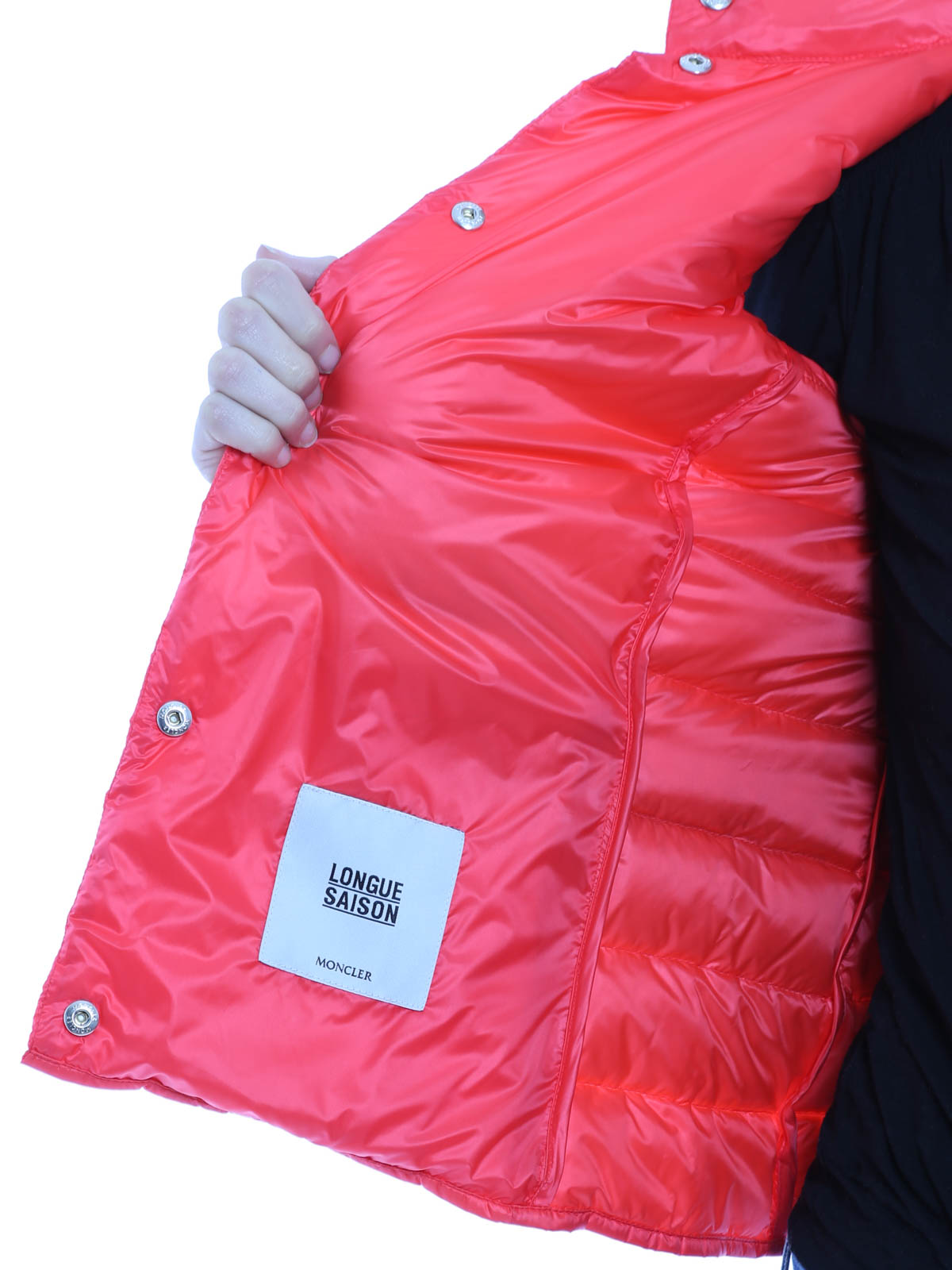 Le printemps approche à grands pas, le poids de la laine chaude n'est plus nécessaire, la porte est plutôt ouverte à la saison colorée Moncler présente Liane Longue saison, rembourrage en duvet et design féminin, donnent le sentiment que Moncler a développé un gilet pour la saison chaude. Spring is almost here and the weight of warm wool steps aside to welcome the season of colors Moncler introduces the Liane The Longue Saison, down quilting and feminine design that sculpts the waist give the sense of how Moncler envisions a vest for the warm weather. Moncler ‘Liane’ quilted down vest Vitkac shop onlineRed ‘Liane’ quilted down jacket with a band collar from Moncler Fastened with s.