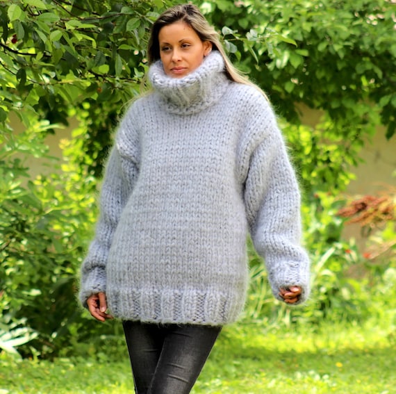 12 Strange Hand Stricken Mohair Pullover Grau Turtleneck Etsy
