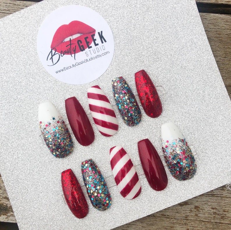 Christmas Fake Nails Etsy