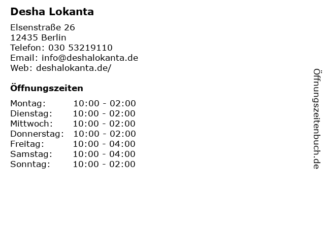 ᐅ Offnungszeiten Desha Lokanta Elsenstrasse 26 In Berlin