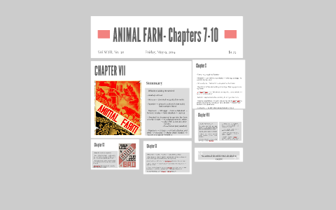 Napoleon – "A large, rather fiercelooking Berkshire boar, the only Berkshire on the farm, not much of a talker, but with a reputation for getting his own way"11 An allegory of Joseph Stalin,9 Napoleon is the main villain of Animal Farm In the first French version of Animal Farm, Napoleon is called César, the French form of. Animal Farm Chapter 7 Worksheet – Review questions on chapter seven of Animal Farm Students consider how winter has affected the farm, how Snowball has been demonized, and more Animal Farm Chapter 7 Worksheet RTF Animal Farm Chapter 7 Worksheet PDF. A vocabulary list featuring Animal Farm Chapter 1 With the ring of light from his lantern dancing from side to side, he lurched across the yard, kicked off his boots at the back door, drew himself a last glass of beer from the barrel in the scullery, and made his way up to bed, where Mrs Jones was already snoring.