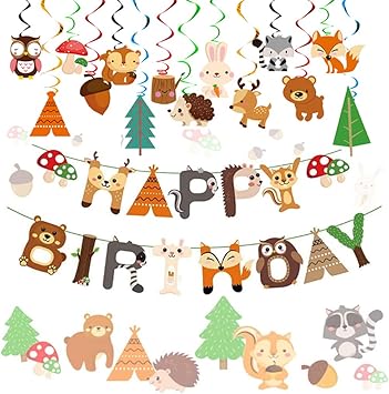 Jevenis Set Von 2 Woodland Party Supplies Tier Geburtstag Banner Waldtiere Banner Waldtier Freunde Unter Dem Motto Luftballons Waldtiere Baby Shower Birthday Party Dekorationen Amazon De Spielzeug