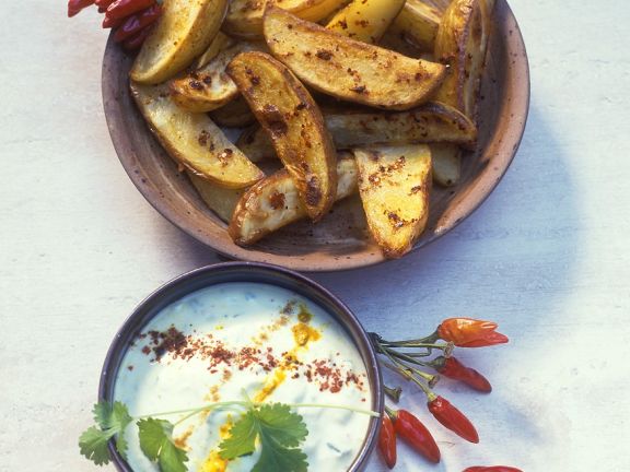 Kartoffelspalten Mit Sauerrahm Quark Dip Rezept Essen Und Trinken