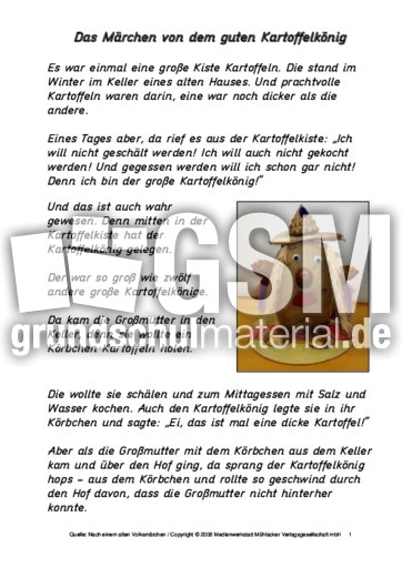 Kartoffelkonig Marchen 1 3 Bastelanleitung Schreiben Schreibanlasse Deutsch Klasse 3 Grundschulmaterial De