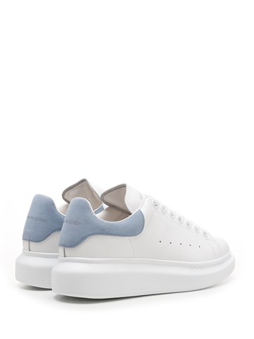White smooth calf leather laceup sneaker with rounded toe and trimmed with Paris Blue suede heel detail Large flat laces and Alexander McQueen signature on tongue and heel counter Oversized rubber sole To lessen our environmental impact and to reduce cotton consumption, we will no longer be providing a dust bag with our sneakers. White smooth calfskin leather sneaker with rounded toe and a oversized Paris blue sole The sneaker features large flat laces and are finished with an Alexander McQueen signature on the heel counter and tongue The sneakers come with an additional set of shoelaces. White smooth calf leather laceup sneaker with rounded toe and trimmed with Paris blue suede heel detail Large flat laces and Alexander McQueen signature on tongue and heel counter Oversized rubber sole To lessen our environmental impact and to reduce cotton consumption, we will no longer be providing a dust bag with our sneakers.