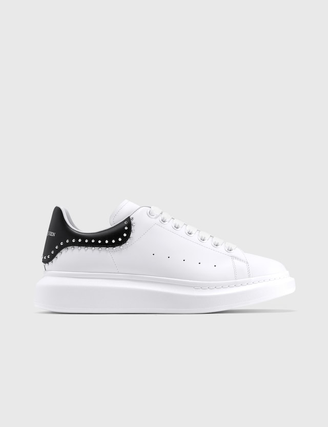 Popular Alexander McQueen sneakers include the deceptively simple, 70sinspired Oversized Ivory Black Apart from the pop of black, this sneaker is totally monochromatic The Oversized Red, with its White colorway and pop of Red at the heel, has also been a hit with collectors. The sneaker features large flat laces and is finished with an Alexander McQueen signature on the tongue and heel counter Oversized rubber sole with signature stamp design The sneakers come with an additional set of shoelaces Material 100% Calf Leather. Outrageous styling to simple pumps from Alexander McQueen From the simple lines of sneakers to outrageous studded and slashed footwear, Alexander McQueen shoes have a design for everybody's wardrobe Contrasting calf leather and suede, velvets and even plexirubber are embellished with applique detailing, jewels and chains.