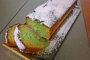 Quark, Kiwi und Götterspeise mit Waldmeister Geschmack Eine delikate Quark Torte mit frischen Kiwi in einem Götterspeisespiegel Die Kiwi Scheiben sollten also nicht frisch geschnitten und auf einem Papiertuch ordentlich abgetrocknet sein Außerdem sollte schon ein Teil der Götterspeise fest sein, so wie in Schritt 1. In den ersten Teil das Puddingpulver rühren, in den zweiten Teil das Pulver der WaldmeisterGötterspeise, in den dritten Teil das Pulver der HimbeerGötterspeise Alles in eine Springform schichten und bei 180 °C (Ober/Unterhitze) 60 min backen In der Zwischenzeit die Schlagsahne mit Vanillezucker und Sahnesteif aufschlagen. Mit einem Stäbchen in die Mitte des Kuchens stechen, wenn kein Teig mehr daran kleben bleibt, kann der Kuchen aus der Backröhre Schritt 4 Kuchen glasieren Zum Abschluss 250 g Puderzucker mit einem Teelöffel weicher Butter und sehr wenig heißem Wasser glatt rühren Damit den Kuchen glasieren.