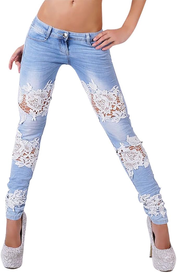 Semen Damen Jean Hose Spitze Rohrenjeans Stickrei Stretch Lace Blumen Skinny Bleistifthose Leeren Loch Denim Kleine Fusse Amazon De Bekleidung