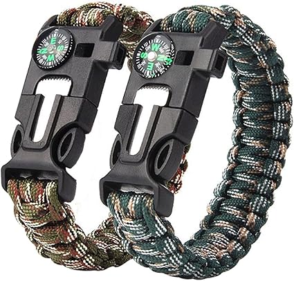 Survival Armband 2er Set Kompass Messer Feuerstarterm Signalpfeife Paracord Anleitung Zum Flechten Outdoor Uberlebensausrustung Fur Wandern Und Camping Bracelet Amazon De Sport Freizeit