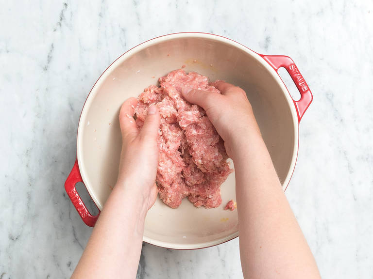 500 g gemischtes Hackfleisch;. Pfeffer und Salz Hackbällchen Schritt 1 Statt mit der Hand kannst du zum Kneten einen Mixer mit Knethaken benutzen Zwiebel fein würfeln, mit Hackfleisch, Ei und Semmelbröseln gleichmäßig verkneten Mit Salz und Pfeffer würzen. 1 Ei (Größe M) 1 EL Paniermehl;.