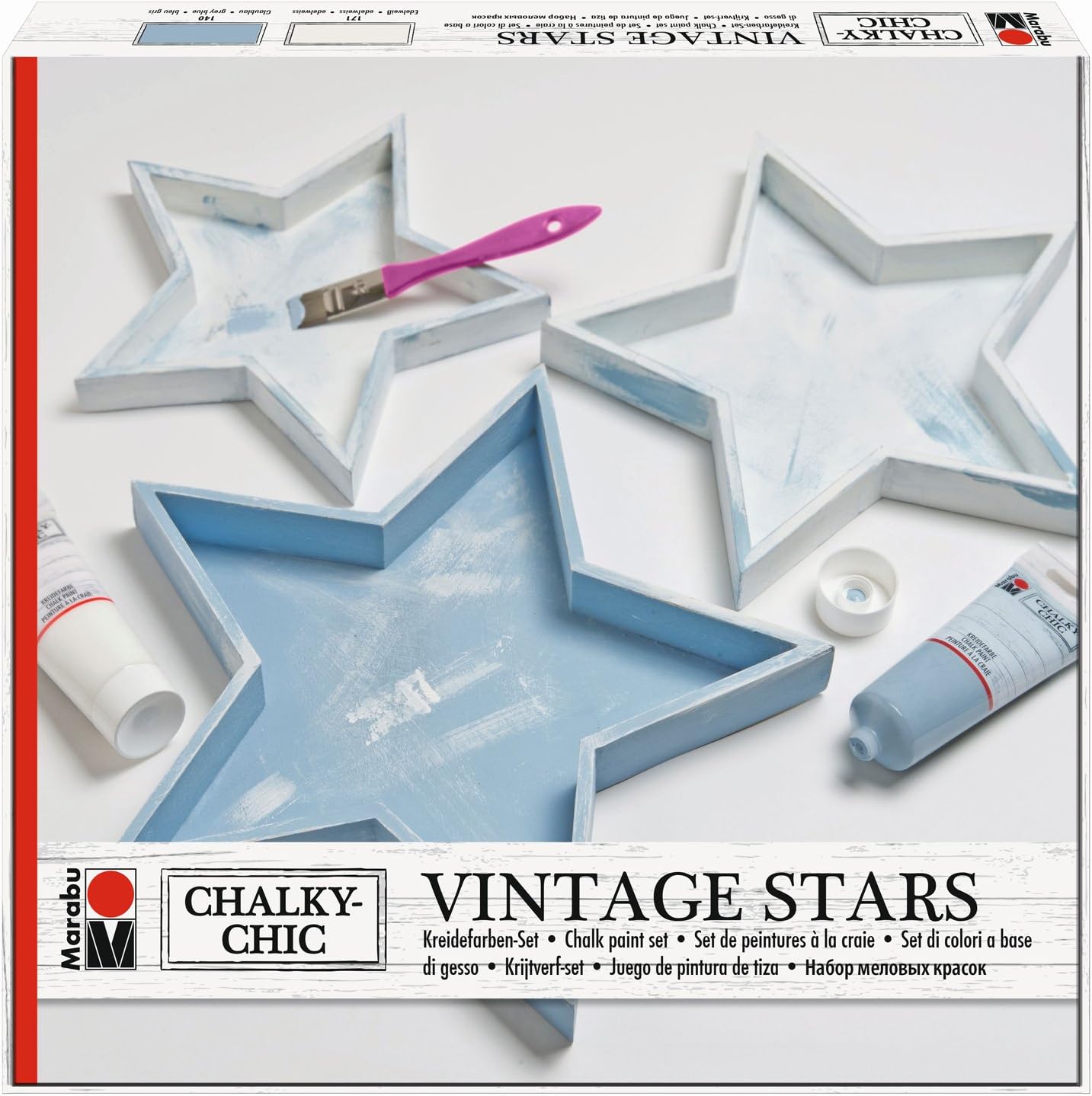 Marabu Chalky Chic Set Vintage Stars 2 X 100 Ml Kreidefarbe Auf Wasserbasis 3 Holz Dekosterne Breiter Pinsel Gr Schleifpapier Fur Used Look Und Anleitung Amazon De Spielzeug