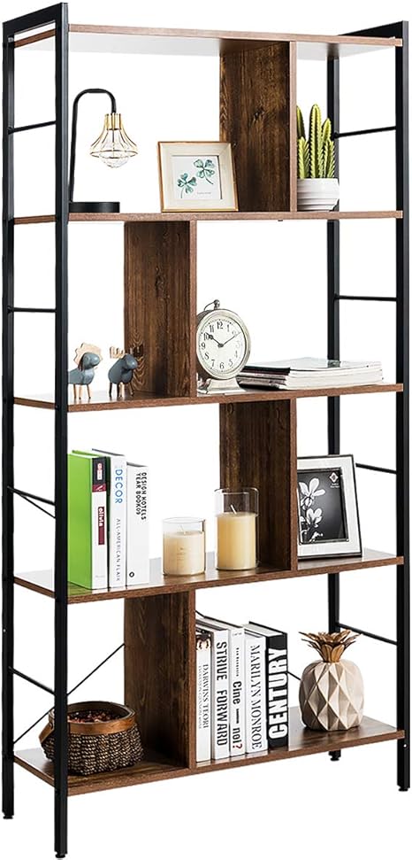 Costway Bucherregal Buroregal Im Industriellen Design Raumteiler Braun Standregal Mit 5 Ebenen Aktenregal Mit Metallrahmen Aufbewahrungsregal Mit Kippschutzbeschlag Amazon De Kuche Haushalt
