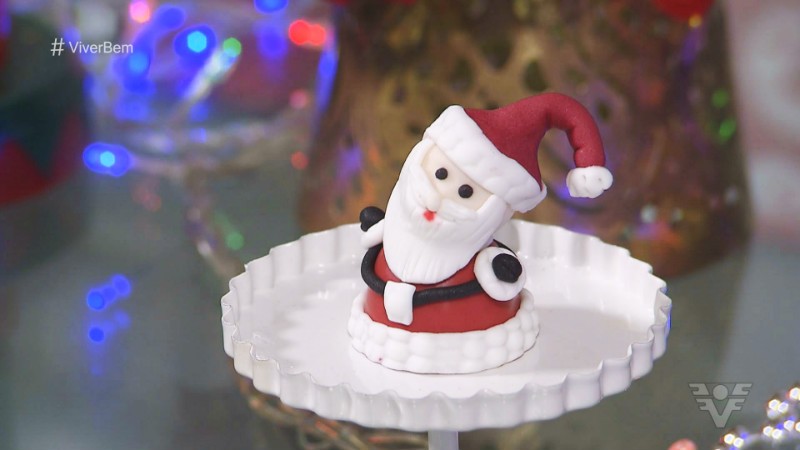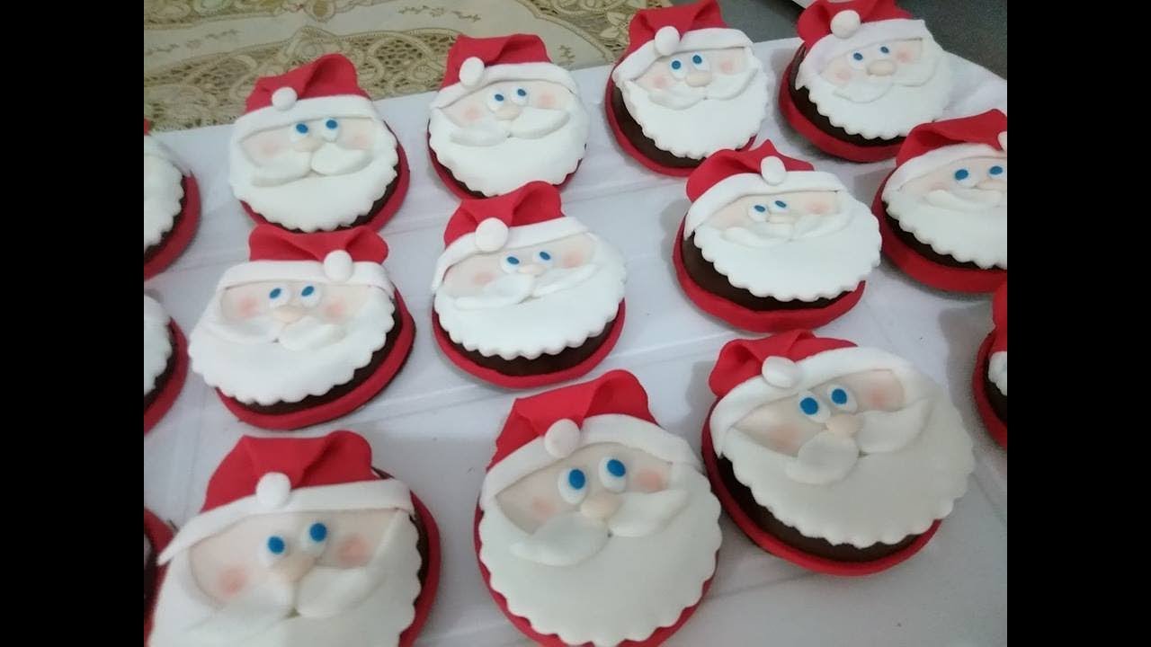 Decorando Cupcakes de Papai Noel 2 em 1!. A Silvia Carlos publicou essa semana um vídeo muito didático, ensinando a fazer a carinha do Papai Noel com pasta americana, e a partir disso você decorar as mais variadas receitas de doces para o Natal cupcakes, bolos e o que mais sua imaginação permitir Fácil demais, assistam A Silvia Carlos é uma Cake Designer cheia de talento e uma ótima professora, ela oferece muitos cursos. Abra a pasta americana na espessura de 5mm Coloque a pasta americana sobre a cabeça do Papi Noel Puxe toda a sobra de pasta para trás e ajuste a pasta ao rosto Corte as sobras com tesoura ou estilete Puxe a massa para baixo, envolvendo toda cabeça.