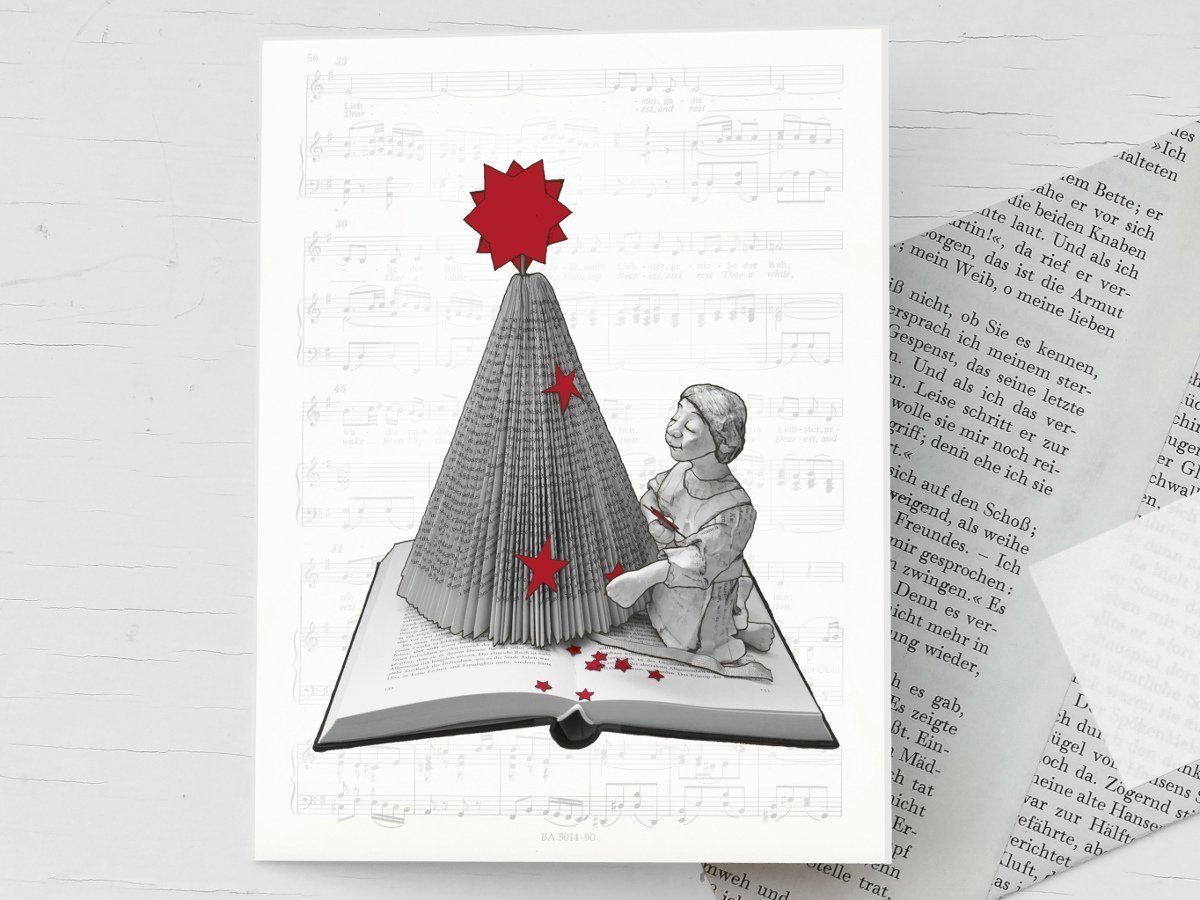 Fur Leseratten Weihnachtsbaum Fur Buchliebhaber Weihnachtskarte Nostalgische Klappkarte Mit Weihnachtsbaum Aus Einem Buch Mit Handgemachtem Umschlag Aus Buchseiten Als Buchgutschein Schreibwaren Karten Grusskarten