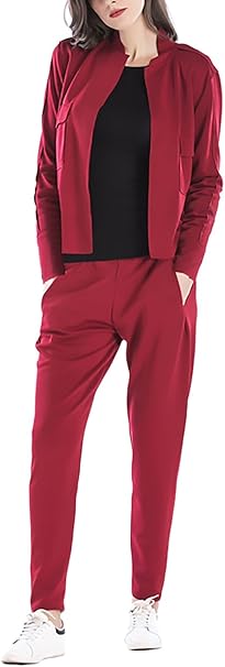 Damen Anzug Jogginghose Stehkragen Langarm Und Lang Hosen 2 Teilig Set Figurbetont Einfarbig Unifarben Elegante Classic Unikat Herbst Winter Bomberjacke Cardigan Hose Freizeithose Jacken Amazon De Bekleidung