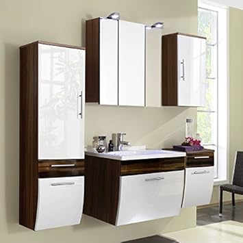 Badmobel Set 3 Teilig Weiss Hochglanz Walnuss Holz Optik Badezimmer Komplettset Spiegelschrank Mit Led Beleuchtung Waschtisch Mit Unterschrank Hochschrank Schubladen Turen Mit Softclose Amazon De Baumarkt