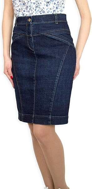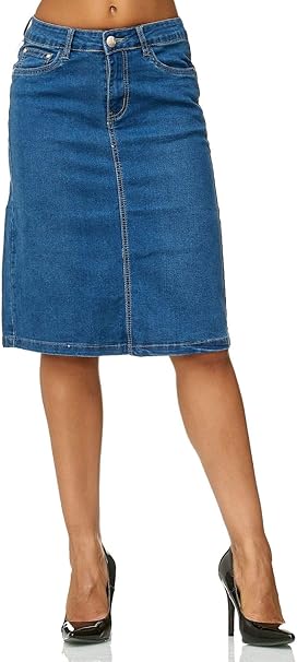 Damen Freizeit Rock Bleistift Boutique Knielang Blau Denim Jeans Grosse Eu 36 38 40 42 44 46 48 50 Amazon De Bekleidung