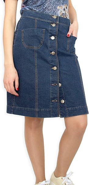 Damen Freizeit Rock A Linie Boutique Knielang Blau Denim Jeans F Selections