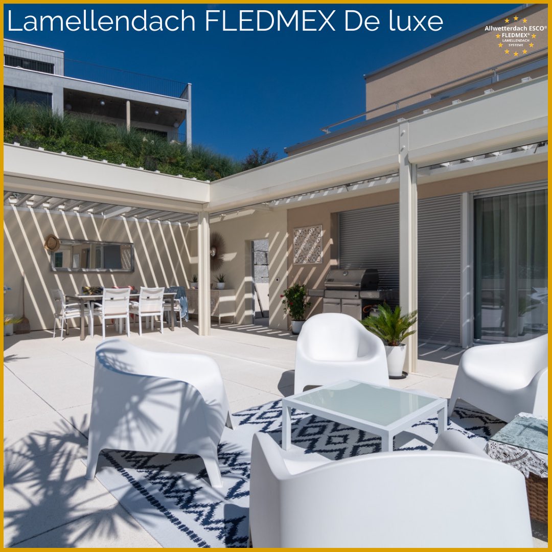 Fledmex ® Lamellendach Echtglas Thermo Alu Sind Sie auf der Suche nach einer individuellen Terrassenüberdachung in Form eines Lamellendaches?. Allwetterdach ESCO GmbH bietet Ihnen mit seinen neun FLEDMEX® Lamellendachsystemen ein qualitativ hochwertiges, in Deutschland produziertes, Produkt und somit die perfekte Überdachung an Denn unser Lamellendach lässt sich den persönlichen und witterungbedingten Gegebenheiten anpassen und Sie als Kunde erhalten eine individuelle, Ihren. Im Lamellendach Video Kanal erfahren Sie Was Sie bei der Planung, Bau, Gestaltung & Ausstattung eines Lamellendach beachten müssen Expertentipps zur Lichtd.