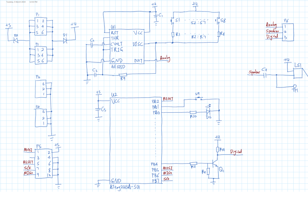 Electronic Piano Circuit CIRCUITS DIY ;. DigitalinaPiano This was a really fun project we did for one of our clients He loved to fiddle with the latest technology and his new wife wanted a beautiful piano for their new home that would match all of their new furniture So we found a piano in our storage that internally was pretty dead, but otherwise looked nice We removed all the. Atmel Attiny2313 electronic piano circuit can be operated by connecting two 15v pen batteries in series (3v) Pins P – 15 and PB4 16 are connected to a 32 ohm speaker and these pins are output With this tone, 13 tones are produced in different tones AVR is a good example for people who are new to programming.
