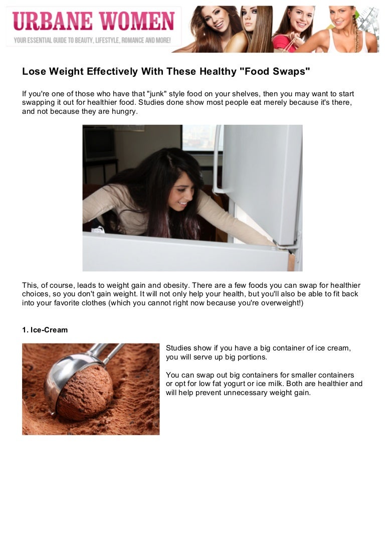 When you are on a diet you crave sugar very easily Ice cream seems to be the best option at that time But it can be a wrong step towards your weight loss plan Swap your ice cream with plain. Dad who shed 4st reveals healthy food swaps so YOU can lose weight in 21 without missing out on your favourite foods Microwavable porridge swapped for rolled oats with maple syrup or cinnamon Microwavable porridge sachets have high Margarine/spreads swapped for real butter While margarine. When it comes to dieting, rules can get really frustrating Everything you crave is everything you can't eat But that's not the way it should be We've.
