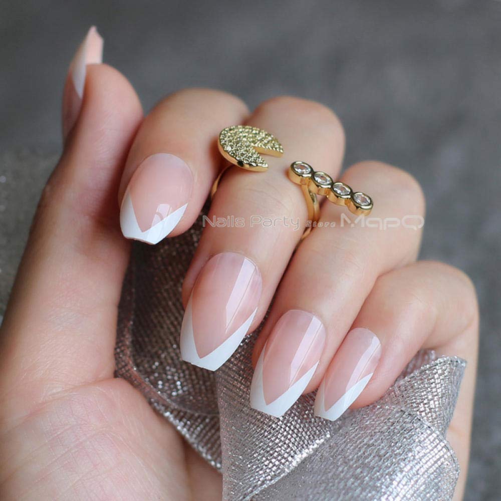 French Nails Simply Beige Weiss False Nail Medium Tips Perle Nail Art Tips 24 Stucke Gelb Natur Pink Vollsets Braun 01 Transparenten Kleber Senden Amazon De Beauty