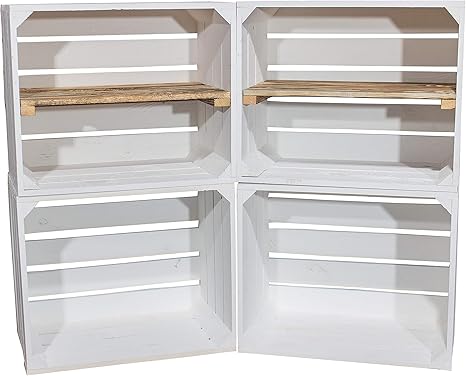 Vinterior Diy Set 4 Kisten Gemischtes Paket Weisse Holzkisten Weinkisten Regal Aus Weissem Obstkisten Mit Geflammten Zwischenboden Amazon De Kuche Haushalt