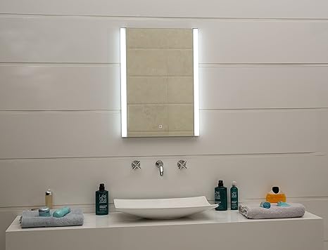 Badezimmerspiegel Mit Beleuchtung Led Spiegel 65x50 Cm Badspiegel Mit Licht Design Spiegel Fur Bad Und Gaste Wc Hinterleuchtet Beleuchteter Wandspiegel Rahmenlos O Led Amazon De Kuche Haushalt
