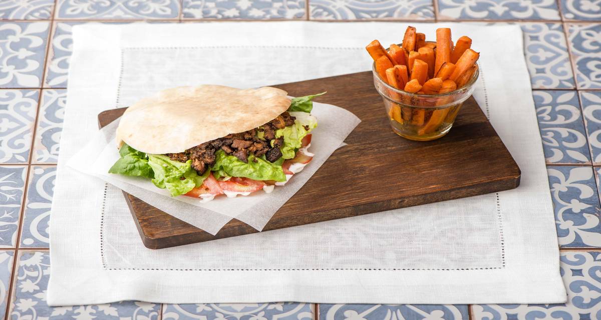 Vegetarischer Doner Mit Knoblauch Joghurtsosse In Pita Taschen Rezept Hellofresh