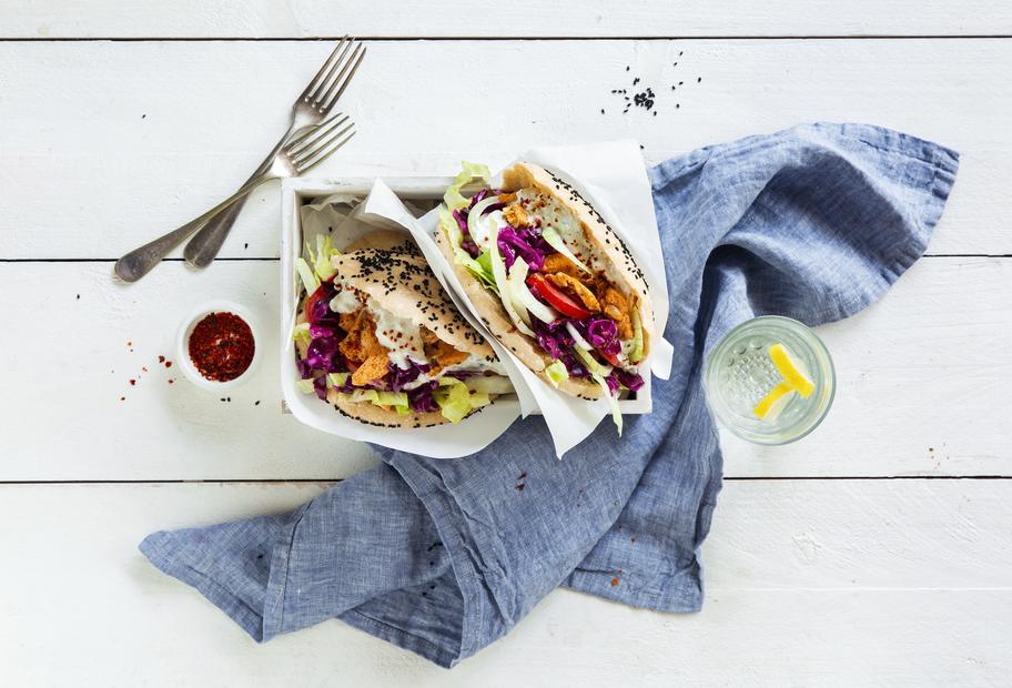 Veggie Doner Mit Knoblauch Joghurtsosse In Pita Taschen Rezept Hellofresh