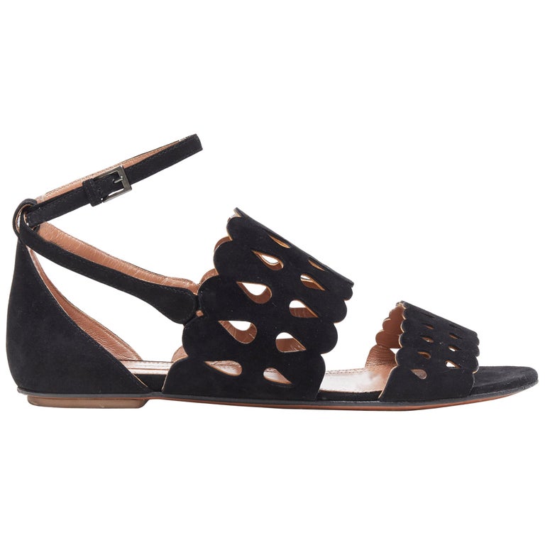 Alaia Black Laser Cut Suede Open Toe Flat Sandals Size 36 Alaia Tlc