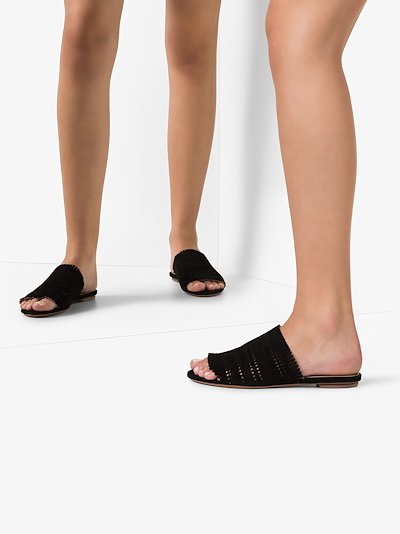 Alaia Black Crossover Mesh Suede Flat Sandals Browns