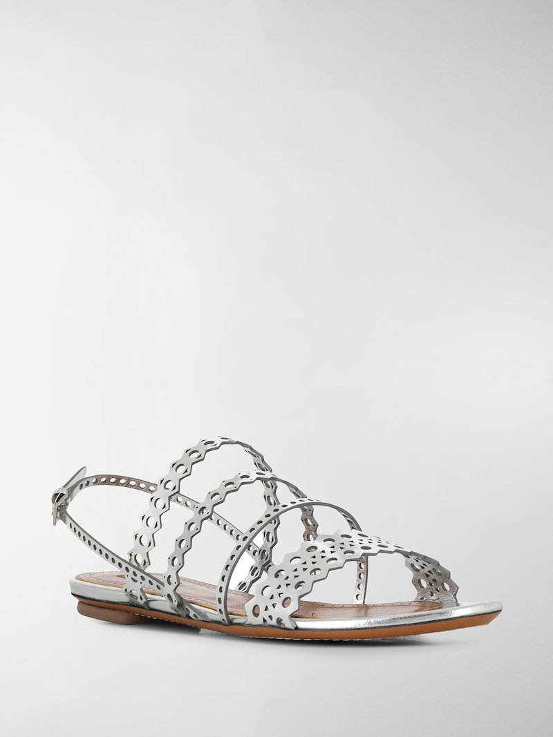 Alaia Flat Laser Cut Metallic Slingback Sandals Neiman Marcus