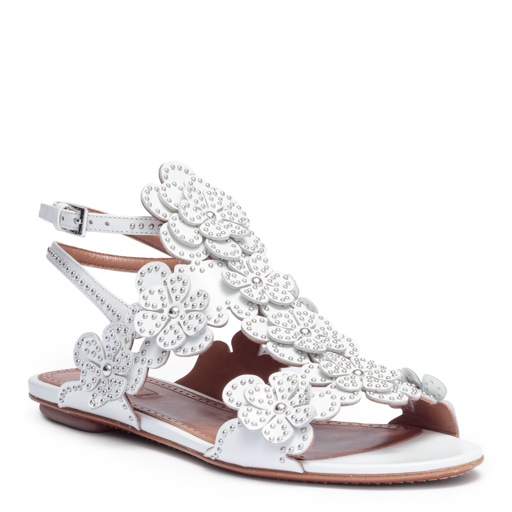 USD $410 USD $2, Alaia Alaïa Woman Laceup Lasercut Leather Sandals Ivory Size 355 Delivery Delivery costs apply. Azzedine Alaïa was a couturier and sculptor, revered for his extensive understanding of — and passion for — the female form Today, the Alaïa maison continues to perfect his masterful cuts with quality, enduring materials that perpetuate his uncompromising approach to creation. Shop onsale Embellished leather sandals Browse other discount designer Flat Sandals & more luxury fashion pieces at THE OUTNET.