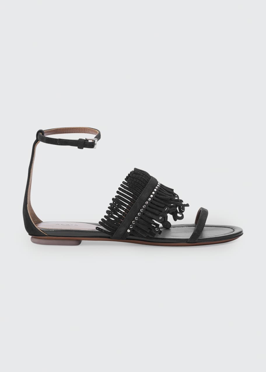 Alaia Suede Fringe Flat Sandals Bergdorf Goodman