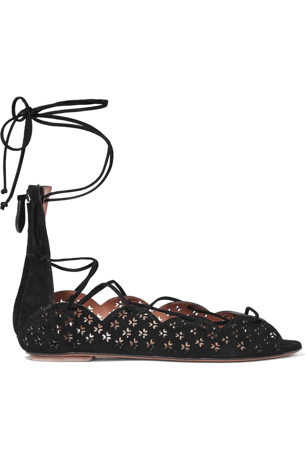 Black Carine Lace Up Laser Cut Suede Sandals Sale Up To 70 Off The Outnet Alaia The Outnet