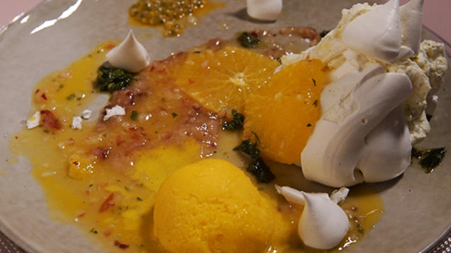 Das Perfekte Dinner Rezepte Pavlova Mango Passionsfrucht Sorbet Gelbe Fruchte