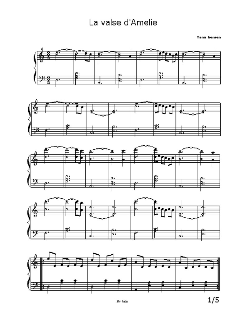 La Valse D Amelie Yann Tiersen Sheet Music Divertissement General Musique Jazz