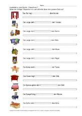 Fill in the blanks with a verb from the list to make a correct German sentence Make sure the verb you choose fits both the meaning and the structure of the sentence You will need to conjugate each verb for the appropriate subject. DAZLernpaket Präpositionen Das Material eignet sich zur Erarbeitung und Festigung des Grundwortschatzes Es ist für den Einsatz im Klassenverband oder zur Arbeit mit Kleingruppen konzipiert. DaZGrammatiktrainer Präpositionen · 1 Liebe Kollegin, lieber Kollege, die folgenden Übungen orientieren sich inhaltlich an den Lernfeldern des DaZLehrplans, der 02 in lokale Präpositionen mit Dativ aus, bei, gegenüber, nach, von, zu Infobox 4.