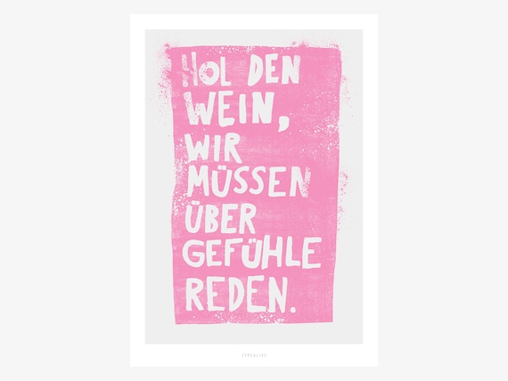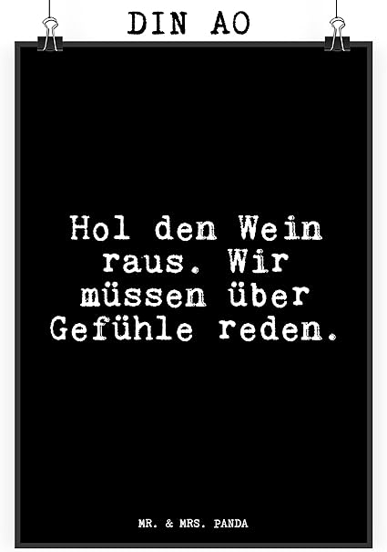 Hol den wein wir mussen uber gefuhle reden poster. Interluxe METALLSCHILD Türschild HOL' DEN Wein, WIR MÜSSEN ÜBER GEFÜHLE REDEN Spruch DAS ORIGINAL Herstellung und Verkauf nur durch INTERLUXE HOME ACCESSOIRES Hergestellt in Deutschland aus 1mm dickem Stahlblech. Typewine präsentiert dieses lustige Flaschenetikett in deutscher Sprache zum Geburtstag, typografisch schön in Szene gesetzt, das man einfach über das Etikett klebt und das Fläschchen Wein auf diese Weise sehr liebevoll in ein besonderes Geburtstagsgeschenk verwandelt. Vergiss die schlichten Glasuntersetzer und bringe Lebensfreude in dein Zuhause mit den wundervollen Untersetzern von Mr & Mrs Panda!.