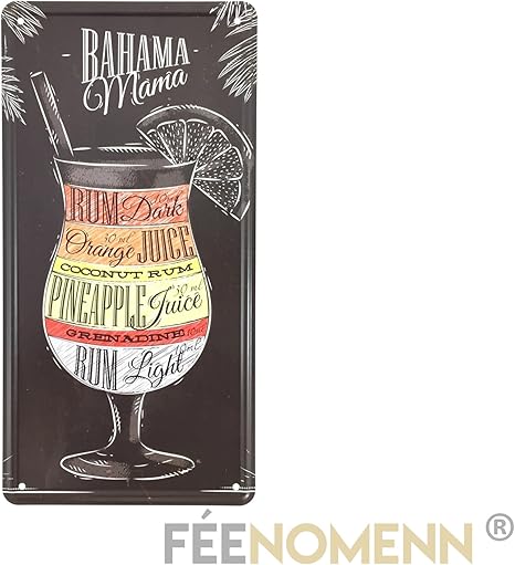 Amazon De Feenomenn Blechschild Vintage Bahama Mama Rezept Cocktail 15 X 30 Cm